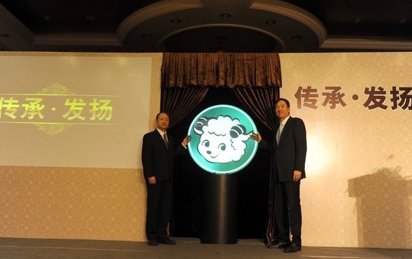 百勝餐飲集團中國事業(yè)部主席兼首席執(zhí)行官蘇敬軾與原小肥羊餐飲連鎖有限公司首席運營官張占海共同為小肥羊新logo揭幕