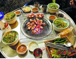 “為了吃上一頓韓國烤肉,大家拼命往前騎,這成了每天騎行的目標。”車友龍輝開玩笑說。這位美食家絕對是“吃貨”中的高手,每次騎行隊抵達一站,不管早晚他都為大家覓食。抵達浦項后,龍輝很快找到了一家烤肉店,從超市高昂的肉價推斷,烤肉肯定是奢侈品。不過,車友們已顧不上價錢,一盤肉不夠,就再上一盤。雖然韓國泡菜免費、美味,但每餐的費用不低,7000韓元一餐(約合人民幣42元)基本上沒有肉,有肉的至少要1萬韓元。