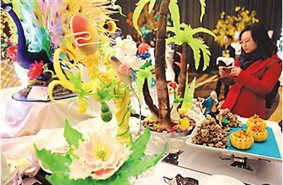 除了特色菜品外,本屆APEC會議餐飲的擺臺也將成為一次“文化盛宴”,老北京四合院及影壁墻、百鳥朝鳳、孔雀迎賓、八仙過海等中國元素,將作 為裝飾出現(xiàn)在會議餐桌上。據(jù)相關負責人介紹,屆時將有8組不同風格的裝飾將點亮餐桌,通過糖雕、果蔬雕、面塑等各種食品雕塑來體現(xiàn)中國文化。其中很多擺臺 更是直接以北京民俗為主題,比如老北京四合院及影壁、天壇、糖葫蘆群像、石獅子……