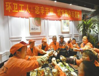“謝幺爸,你不是經常吼好想吃頓火鍋得嘛,今天可以敞開肚皮整哦!”“今天就算我們提前團年啦!來大伙一起喝一杯。”180名環衛工人一邊燙著火鍋,一邊擺著龍門陣。原來,這些被邀請來的環衛工們,全部為轄區一線的環衛工,平均年齡50多歲。50多歲的李大姐干環衛工已有八年時間,她說,今天的火鍋不僅味道巴適口感舒服,更覺得心里暖和。吳大姐接過話來,“你看這么漂亮的店堂還專門貼上了標語:“最辛苦的人——環衛工人”;“環衛工人!您辛苦啦,城市因你而美麗”真讓人感覺貼心、暖心……