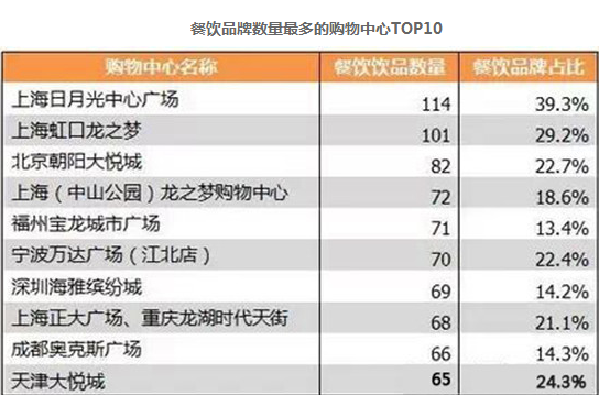 餐飲品牌數(shù)量最多的購物中心TOP10