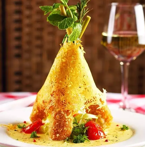 讓菜品立體起來也是阿KEN近年的嘗試。在此之前,他常常是將菜品裝飾得像畫一樣,色彩繽紛,醬汁與肉類搭配得完美。后來他覺得要讓菜品“立”起來,如“印第安帳篷”就是讓人驚艷的菜式。當時,他去參加加拿大農業部舉辦的活動,考察加拿大的牲畜產業,聽當地人講印第安人的故事。他從中得到靈感,將加拿大豬手和與芝士結合,制作了這道菜品,得到參加活動的各國廚師同行一致贊賞。阿KEN說,作為一個中國廚師,他感到非常自豪。