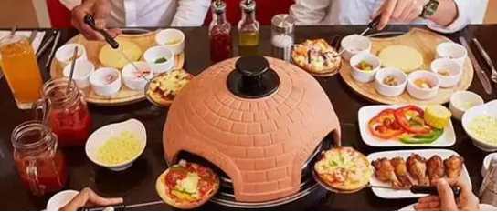 將自己做好的比薩餅放入桌面的小烤爐中,在開心聊天中等侯吧!烤爐時間當然根據(jù)食材來設(shè)定。