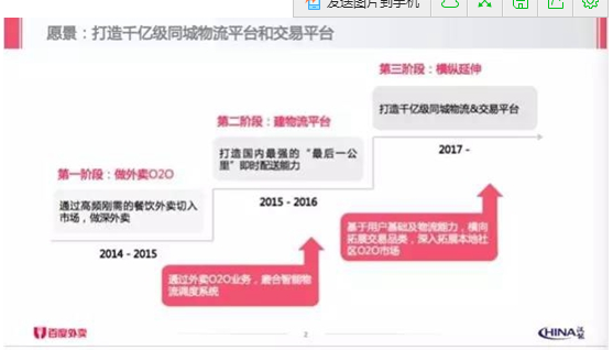 流傳出來的商業(yè)計(jì)劃書中,百度外賣試圖把自己包裝為千億級(jí)別的同城物流平臺(tái)