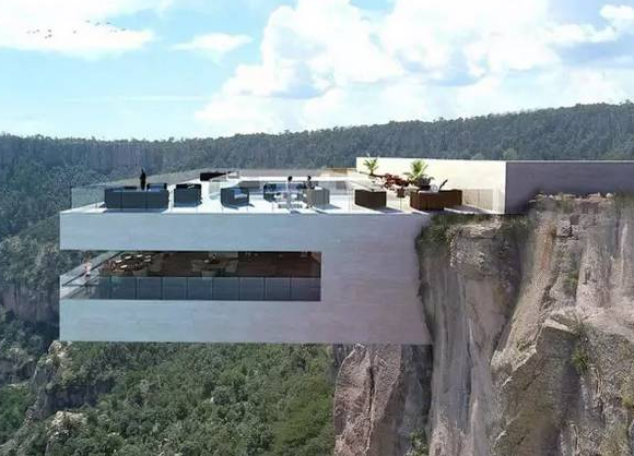 這座餐廳的外側采用未來設計,能夠從外側直達擬建建筑的上下兩層。如果你喜歡能欣賞風景的房間,那么你這座懸崖邊上的擬建餐廳中,將會有賓至如歸的感受,何況這里還有游泳池!從效果圖上看,如果經過批準許可,這家餐廳和酒吧將會完全懸掛在墨西哥峽谷之上。