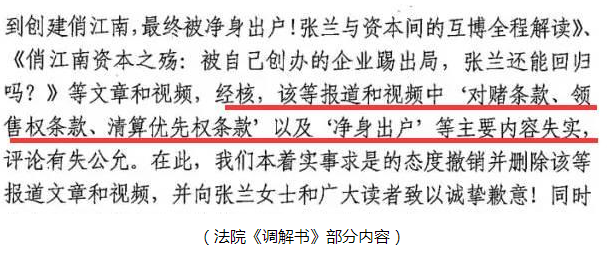 而在昨天,沸沸揚揚了近兩年的“對賭協(xié)議”事件出現(xiàn)驚天逆轉(zhuǎn),北京朝陽人民法院《調(diào)解書》顯示,《新財富》刊發(fā)的《俏江南:資本之殤》等數(shù)篇報道中對俏江南的“對賭條款、領(lǐng)售權(quán)條款、清算優(yōu)先權(quán)條款”以及張?zhí)m“凈身出戶”等主要內(nèi)容失實,并正式向張?zhí)m道歉。