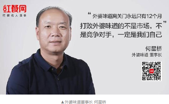 何星橋經(jīng)常對(duì)員工說(shuō)的一句話(huà)就是,外婆味道離關(guān)門(mén)永遠(yuǎn)只有12個(gè)月。因?yàn)樵谒壑校驍⊥馄盼兜赖牟皇鞘袌?chǎng),不是競(jìng)爭(zhēng)對(duì)手,一定是我們自己。居安思危也就成了他事業(yè)的座右銘。