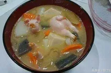 還有一道有些特殊的“什錦湯”,一碗湯里邊一個(gè)豬屁股一個(gè)豬頭就這樣望著你,盡管說是豬肉宴,可是感覺這頓飯吃的很不是味道,心里有點(diǎn)兒厭惡。