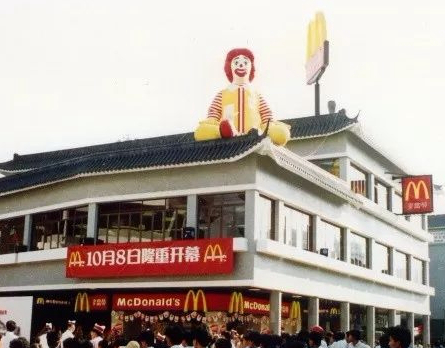 圖:1990年麥當勞在深圳開出中國第一家門店的照片。據(jù)悉,由于太過火爆,當天深圳餐廳還從香港緊急調(diào)來了500多名員工幫忙。